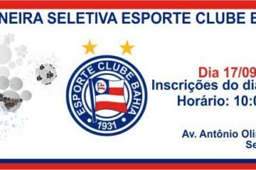 Esporte Clube Bahia busca talentos do futebol em Sete Lagoas Felipe de Jesus 8 de setembro de 2016 Cultura, Notícias 74 Seletiva será realizada no dia 17 de setembro no Campo do Bela Vista Com objetivo de revelar novos talentos do futebol, o Esporte Clube Bahia marcou a data para a seletiva de atletas em Sete Lagoas. No d... Leia mais...