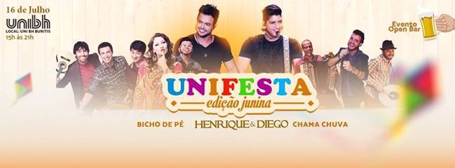 UNIFESTA reúne Henrique & Diego, Bicho de Pé e Chama Chuva em Belo Horizonte Felipe de Jesus 10 de junho de 2016 Cultura, Economia, Notícias 87 Festa universitária será realizada no dia 16 de julho no UNI BH Estoril Quadrilha, comidas típicas, gente bonita, decoração temática e muito forró e sertanejo embalarão a primeira edição da UNIFESTA. No dia 16 de julho, sábado, a partir das 15h, o campus do UniBH Estoril (Av. Professor Mário Werneck, 1685 – Estoril) será palco para o sertanejo de Henrique & Diego e o forró dos grupos Bicho de Pé e Chama Chuva. O evento é 100% open bar e serão disponibilizadas barraquinhas com comidas típicas para venda, como espetinhos, caldo de feijão, caldo de mandioca, cachorro quente, milho verde, pipoca, churros, docinhos e canjica doce. Realizado pelo DCE UNIBH, o evento contra com a produção da Solução em Eventos e IG Produções. Henrique & Diego Vindos de Cuiabá, capital do Mato Grosso, os jovens iniciaram na vida artística separadamente. Diego despertou o interesse pela música quando criança, já Henrique começou a cantar no grupo de jovens da escola. O encontro entre os dois aconteceu em 1998 e em 2009 eles gravaram o primeiro disco, Te Peço de Volta e de lá para cá mais três álbuns. Todavia, o sucesso só aconteceu mesmo após a gravação do disco Tempo Certo / Ao Vivo em Campo Grande, que traz os sucessos 5 Horas da Manhã, Suíte 14, Safadim, Safadim, Festa Boa e Oh Delícia. Bicho de Pé O Bicho de Pé é um grupo que compõe e toca música regional brasileira, com ênfase nos ritmos dançantes do Norte e Nordeste, como xote, baião, samba, forró, xaxado, maracatu, carimbó e arrastapé. Em 16 anos de carreira, produziu 4 CDS, 2 DVDs e 1 documentário. A banda já fez uma turnê pelos Estados Unidos e quatro turnês pela Europa. Já divulgou seu trabalho na Suíça, Alemanha, Holanda, Bélgica, Portugal, França, Itália, Finlândia, Rússia, Espanha, Áustria e Inglaterra. O grupo faz shows em todo o Brasil, principalmente nas cidades de São Paulo, Rio de Janeiro, Belo Horizonte, Brasília, Florianópolis e Salvador. Chama Chuva Com um DVD e nove CDs gravados, o grupo de forró pé-de-serra Chama Chuva está presente no mercado fonográfico há mais de 15 anos. Formado por Mozão Muniz (vocal e violão), Waguinho Vasconcelos (voz e triangulo), Dil Brasil (voz e zabumba), Fabiano Santana (voz e acordeão) e Roni Souza (voz e baixo), além de uma equipe técnica profissional, o grupo surgiu em cenário cultural brasileiro riquíssimo: Vila de Itaúnas -E.S. (Dunas de Itaúnas), em 1999. O Chama Chuva começou sua trajetória musical, emplacando grandes sucessos em seu primeiro CD. Samarina, Cativeiro Coração, Esse Bicho Mata, Um pouquinho de você, e A novidade, são músicas que tiveram naquela época, e ainda tem, grande aclamação do público. Serviço: UNI Festa Data: 16 de julho, sábado Horário: 15h Local: Campus do UniBH Estoril (Av. Professor Mário Werneck, 1685 – Estoril) Atrações: Henrique e Diego (Sertanejo) Bicho de Pé (Forró) Chama Chuva (Forró) Ingressos: Área Open Bar (vodka, cerveja, catuaba, refrigerante e água) Pré-lote: R$ 70,00 (meia entrada) 1º lote a definir 2º lote a definir 3º lote a definir Camarote Open Bar: Tequila, vodka, cerveja, catuaba, energético, refrigerante e água. Pré-lote:- R$ 120,00 (meia entrada) 1º lote a definir 2º lote a definir 3º lote a definir Alunos do Uni BH tem desconto – procure o DCE Vendas online: //www.centraldoseventos.com.br/comprar/uni-festa-edicao-junina-16-de-julho Pontos de vendas Central dos Eventos: Savassi – Rua Fernandes Tourinho 470, Loja 16 Galeria C&A no Centro | Big Shopping Contagem Shopping Pampulha Via Brasil | Shopping Sete Lagoas BH Shopping | Loja Chilli Beans Pátio Savassi | Loja Chilli Beans Minas Shopping | Loja Chilli Beans Vendas DCE Uni BH Buritis | Antônio Carlos | Lourdes | Cristiano Machado Mais informações: 4141 2929 Realização: DCE UNIBH Produção: Solução em Eventos e IG Produções Apoio: DUE UNIBH Classificação: 18 anos Assessoria de Imprensa: Grupo Balo de Comunicação – www.grupobalo.com Heberton Lopes – hlopes@grupobalo.com – (31) 3077 0606 | (31) 98988 7616 Heberton Lopes Diretor e jornalista responsável E-mail: hlopes@grupobalo.com Skype: hebertonlopes Telefones: +55 31 3077 0606 | +55 31 98327 5743 (WhatsApp pessoal) Plantão GBC 24 horas: +55 31 98988 7616 (WhatsApp corporativo) Curta o #GBC no Facebook: //www.facebook.com/grupobalocom Siga o #GBC no Instagram: @grupobalo Acesse o nosso site: www.grupobalo.com comentários