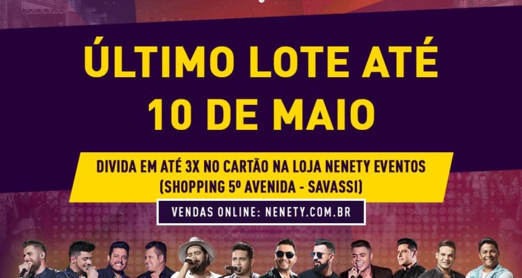 Contagem regressiva para o maior evento de música sertaneja do Brasil Felipe de Jesus 2 de maio de 2019 Notícias 2 A 5ª edição do Festival Brasil Sertanejo acontece no dia 11 de maio, sábado, a partir das 14h, na Esplanada do Mineirão; Mano Walter, Felipe Araújo, Bruno & Marrone, Zé Neto & Cristiano, Henrique & Juliano, Léo Magalhães, Beto & Breno e Dennis DJ prometem muita animação Falta pouco para a realização de um dos maiores eventos de música do país, o Festival Brasil Sertanejo. A 5ª edição da festa acontece no dia 11 de abril, sábado, a partir das 14h, na Esplanada do Mineirão (Av. Presidente Carlos Luz – Pampulha, Belo Horizonte – MG) com uma programação recheada de artistas de sucesso, como Mano Walter, Felipe Araújo, Bruno & Marrone, Zé Neto & Cristiano, Henrique & Juliano, Léo Magalhães, Beto & Breno e Dennis DJ. O evento presenteará os fãs do sertanejo com algumas novidades, como, Mano Walter, conhecido por exaltar o ritmo da vaquejada no Brasil e pelo seu hit Juramento do Dedinho. Mas, além dele, os fãs terão a presença de Felipe Araújo, dono do sucesso Atrasadinha e músicas consagradas como Mala Falsa. Em seguida, Bruno & Marrone, dupla com mais de 34 anos de carreira e de enorme destaque na música nacional, promete emocionar o público com Dormi na Praça e outros sucessos que fizeram deles um fenômeno musical. O festival ainda terá muita animação com Zé Neto & Cristiano, um dos destaques do sertanejo com as músicas Seu Polícia e Notificação Preferida. Já Henrique & Juliano, a dupla que arrasta multidões, chega para comprovar toda a sua força e prometem arrancar suspiros com os hits Quem Pegou, Pegou e Aquela Pessoa. A 5ª edição do Festival Brasil Sertanejo contará também com muito romantismo, já que Léo Magalhães trará todo o seu carisma e simpatia com o sucesso Oi, uma das canções mais tocadas nas rádios em 2018, Alô e outras músicas que recheiam sua discografia. Mas além dos nomes já consagrados, a 5ª edição do Festival Brasil Sertanejo terá espaço também para revelações, como, a dupla Beto & Breno. E para dar um tempero mais do que especial na programação, o Dennis DJ transformará o evento em um verdadeiro baile funk com sua performance contagiante no palco e um show repleto de efeitos especiais. Festival Brasil Sertanejo O Festival Brasil Sertanejo foi criado em 2015 pela Nenety Eventos e o Empresário João Wellington. Desde então o evento é realizado na Esplanada do Mineirão, reunindo os maiores nomes da música sertaneja e milhares de fãs a cada edição. Já passaram pelos palcos do festival, artistas como, Chitãozinho e Xororó, Henrique e Juliano, César Menotti e Fabiano, Gusttavo Lima, Zé Neto e Cristiano, Marília Mendonça e muitos outros.de toda a história, em número de atrações. Ao todo, oito grandes shows acontecerão no palco do evento, somando mais de 12 horas de festa. Na programação estão Matheus & Kauan, Jorge e Mateus, Alok, Simone e Simaria, Jonas Esticado, Aviões, Cleber e Cauan e Luan Santana. Serviço Festival BrasilSertanejo Local: Esplanada do Mineirão – Av. Antônio Abrahão Caram, 1001, Pampulha, Belo Horizonte/MG Data: 11 de maio, sábado Horário: a partir das 14h Atrações: Mano Walter, Felipe Araújo, Bruno e Marrone, Zé Neto e Cristiano, Henrique e Juliano, Léo Magalhães, Beto e Breno e Dennis DJ Ingressos Área Vip: R$90,00 Camarote Oficial: R$180,00 Front Stage: R$240,00 Camarote Black: R$410,00 Camarote Sense: R$200,00 Vendas: www.nenety.com.br Classificação etária: Área Vip – 14 anos Camarote Oficial, Sense, Front Stage e Camarote Black – 18 anos Realização: Nenety Eventos e Empresário João Wellington Mais informações ao público:www.nenety.com.br comentários